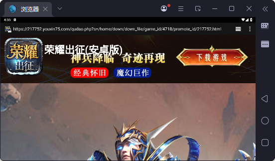 3.输入官方链接下载游戏:https://217752.youxin75.com/qudao.php?s=/Download/f/WzQ3MTksNDcxOCwyMTc3NTJd